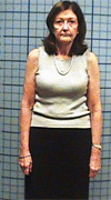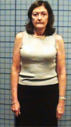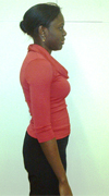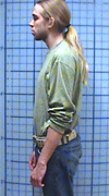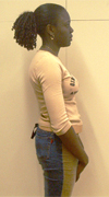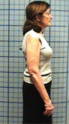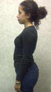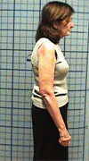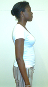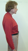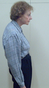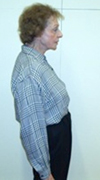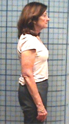 In the following photos you can observe changes that are occuring after the first visit. As we started some photos are in a series hence obviously more than 1 visit. When viewing from the side, please take note of the patient's new shoulder and head position on the grid. Also note the increase in the patient's curve in the low back , and the slimming effect the treatment has on the patient 's abdomen. When viewing from the FRONT and SIDE please take notice of the more youthful appearence of the patient's face. Lines are diminished and color is returned to the patient's palor. If we can improve your body structure this quickly, imagine how much better you will feel!